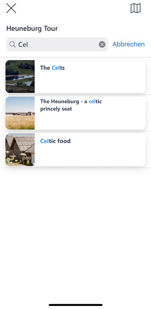 Naturalmente, non è necessario strutturare la vostra offerta in tour sequenziali. I visitatori possono muoversi liberamente all'interno di un'esposizione e utilizzare monamu secondo le necessità. Per trovare la descrizione di un'opera, è disponibile una ricerca full text. I visitatori possono cercare semplicemente un termine o inserire codici alfanumerici, come avviene con molte audioguide. Un lettore di codici QR non è ancora disponibile, ma già previsto in un prossimo release. Anche un generatore di codici QR verrà programmato nel workspace di monamu.