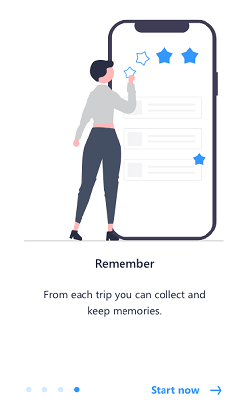 Schermata di onboarding con indicazione della possibilità di raccogliere ricordi, ad esempio tramite i preferiti