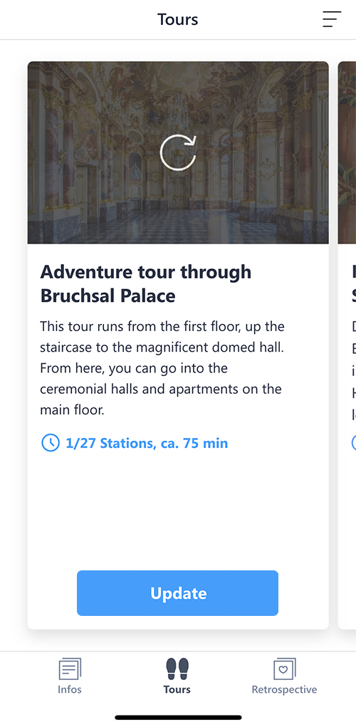 Nel workspace di monamu puoi creare i vostri tour multimediali e inserire tutte le informazioni che appariranno per i visitatori nell'app di monamu. Potete modificare questi contenuti in qualsiasi momento senza dover attendere un aggiornamento dell'app. Gli utenti riceveranno una notifica quando sarà disponibile una versione più recente del tour.